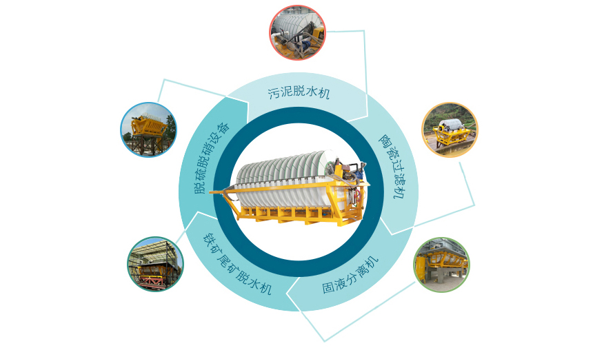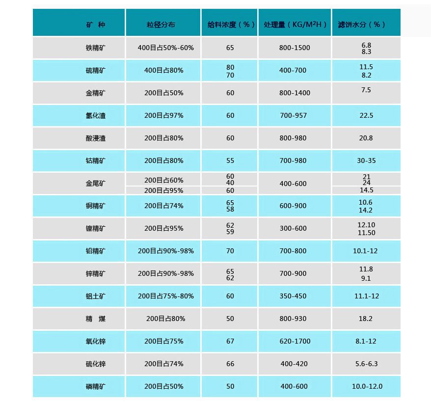 目前已廣泛應用于銅、鐵、金、銀、錫、鋁、鉛、鋅、鎳、鈷、鈀、 鉬、鉻、銘、硫、磷、煤、硅、石英、云母、錫土等精礦、尾礦脫水、化工行業氧化鋅、氧化鉛、硫化鋅 、電解渣、浸出渣、爐渣的脫水及環保污水泥廢酸處理等。物料細度從-200到-450目以及各種超細物料。